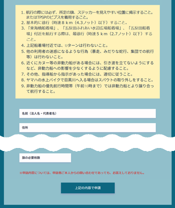 動力船は旗、水上オートバイ、非動力船はステッカーの